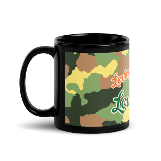 Army Camo Black Glossy Mug - Warriors never lay down their weapons