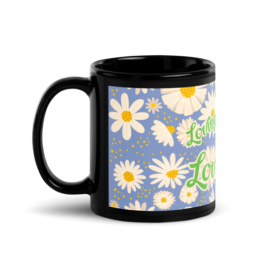 Blue Daisies Black Glossy Mug - Loving U Loving me