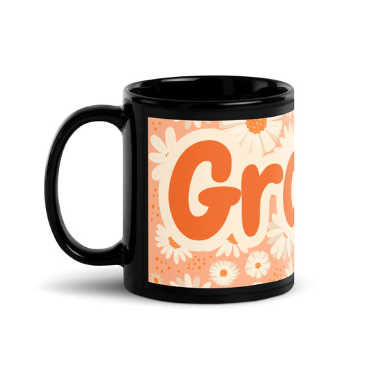 Peach Daisies Black Glossy Mug - Loving U Loving me