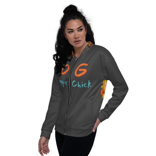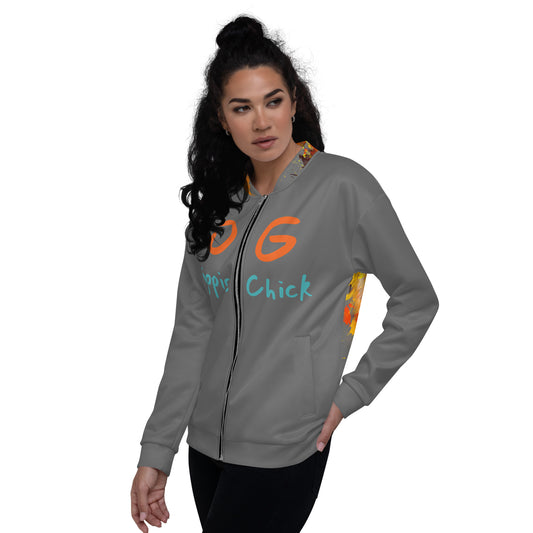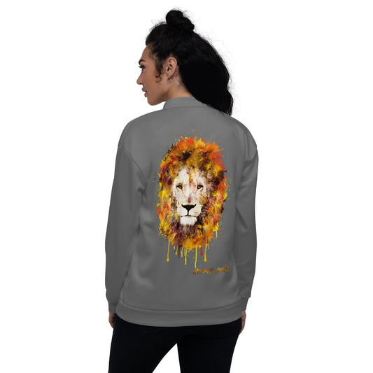 Grey Bomber Jacket - OG Hippie Chick (large Lion on back)
