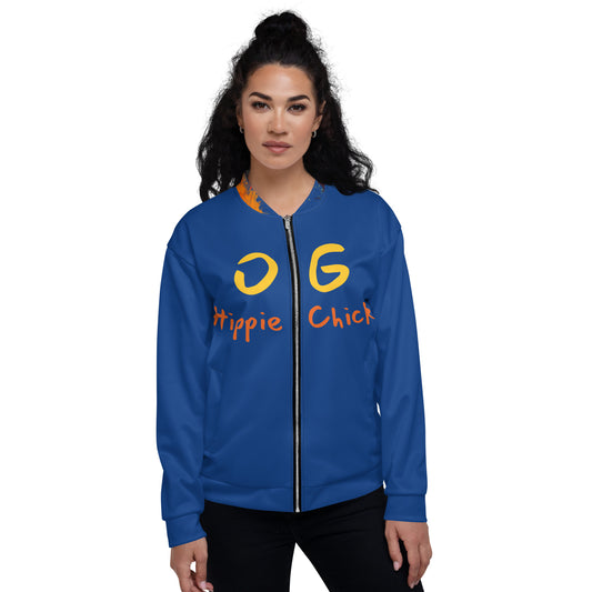Blue Bomber Jacket - OG Hippie Chick (large Lion in back)