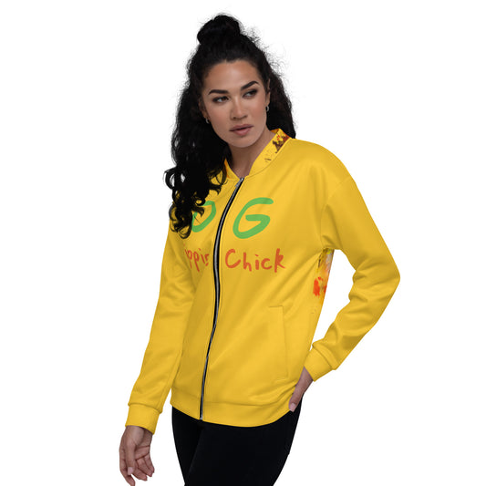 Yellow Bomber Jacket - OG Hippie Chick (large Lion on back)