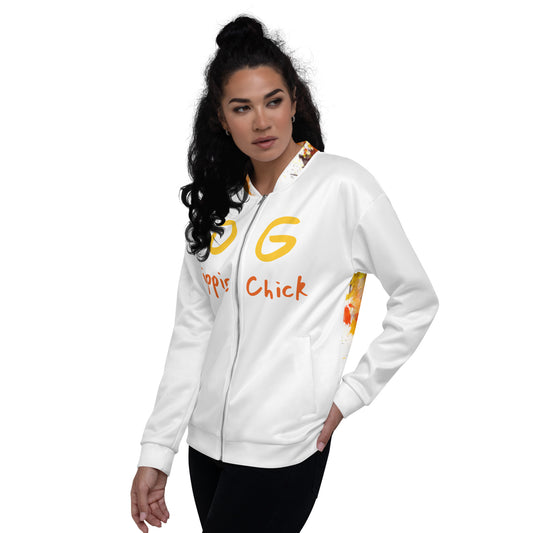 White Bomber Jacket - OG Hippie Chick (large Lion on back)