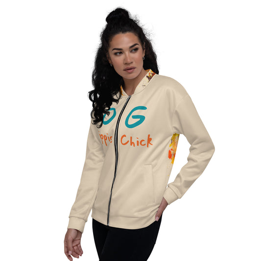 Beige Bomber Jacket - OG Hippie Chick (large Lion on back)