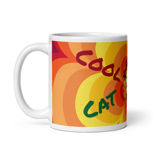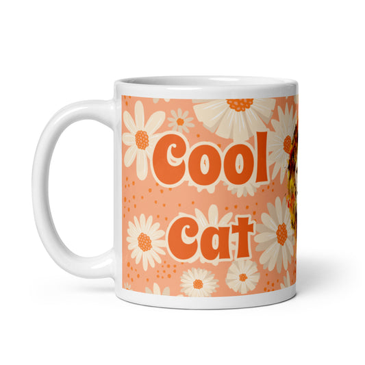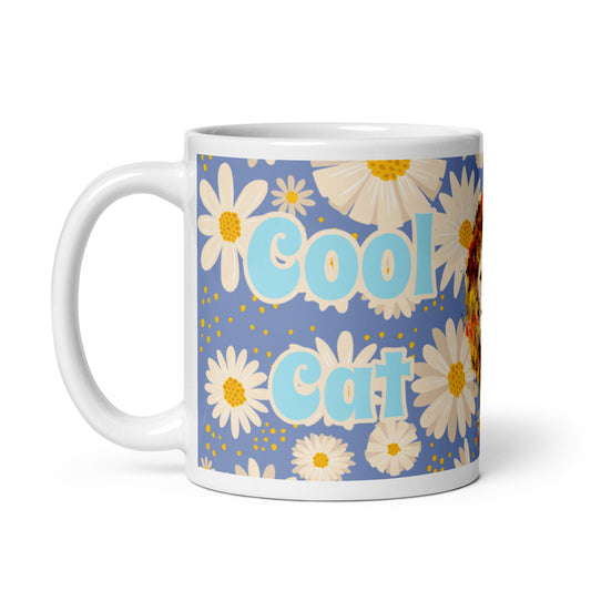 Sunny Flower White Glossy Mug - Cool Cat