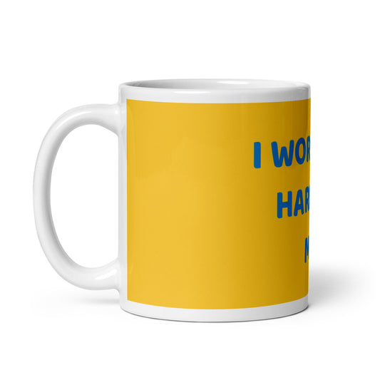 Yellow White Glossy Mug - I work hard for me now