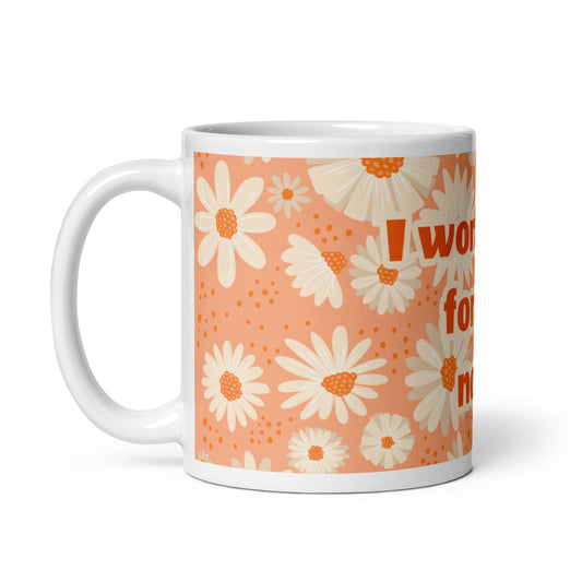 Peach Daisies White Glossy Mug - I work hard for me now!