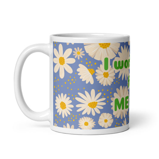Blue Daisies White Glossy Mug - I work hard for me now!