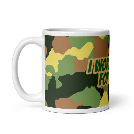 Army Camo White Glossy Mug - I work hard for me now!